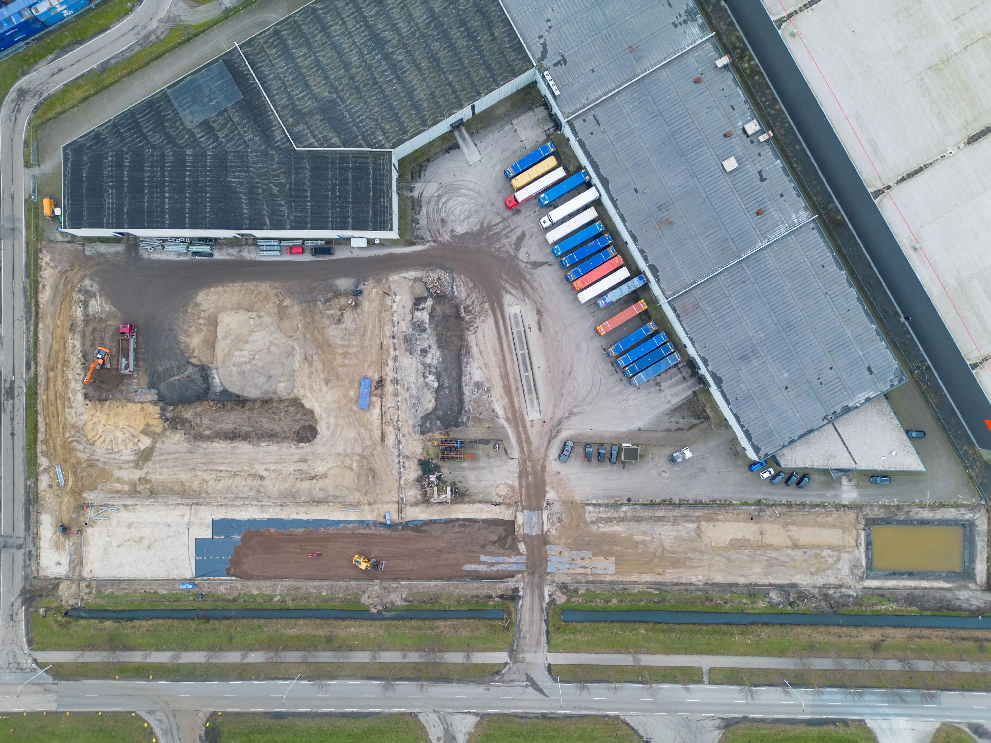 In december 2025 wordt gestart met het aanleggen van het buitenterrein en is begin Q2 2026 beschikbaar. Hierbij wordt de volledige verharding vervangen en omheining aangebracht. Verschillende indelingsvarianten geven mogelijkheden tot het stallen van ca. 80 trailers.