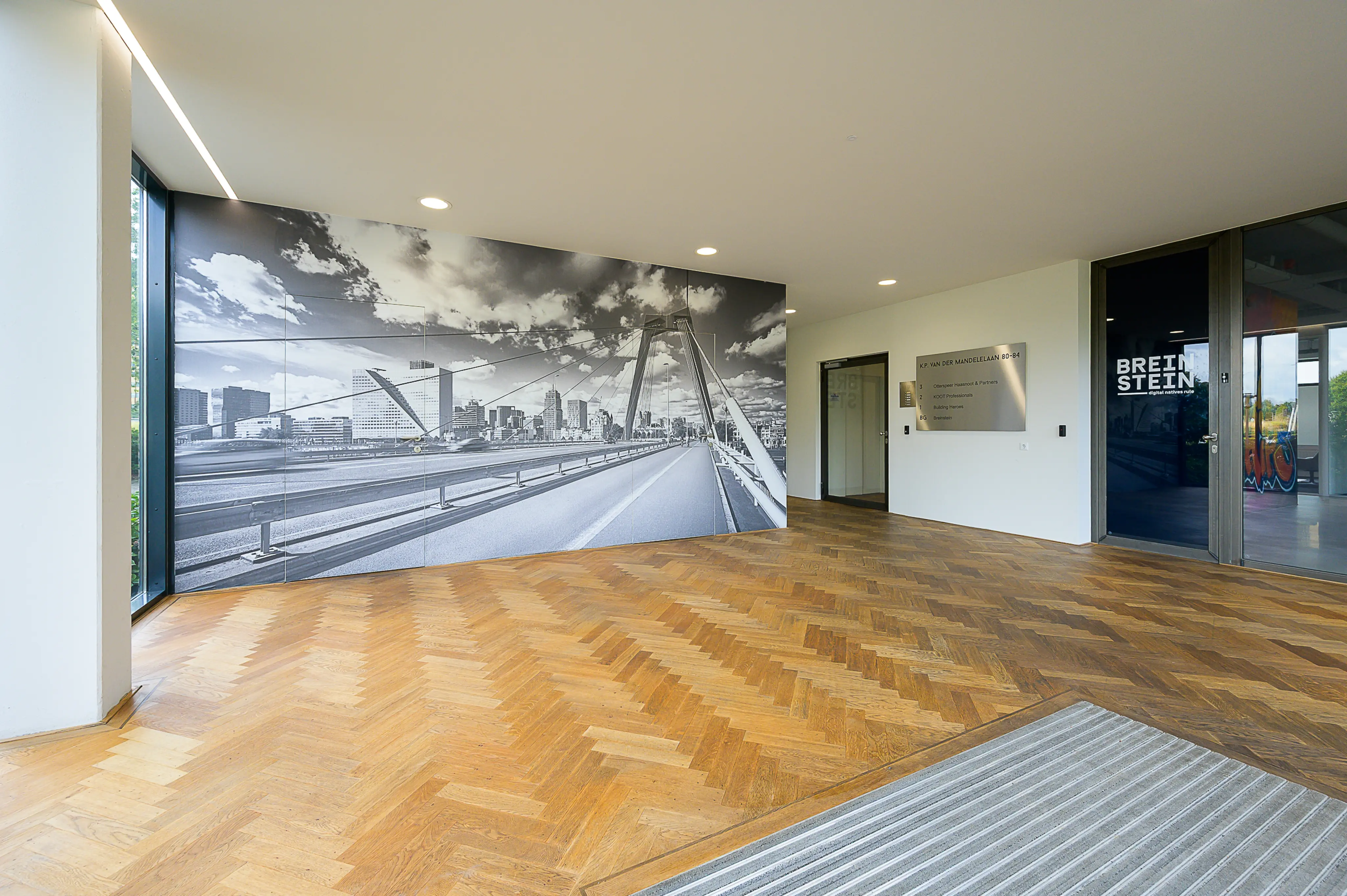 Circa 374 m² representatieve turn-key kantoorruimte gelegen op de 2e verdieping van het kleinschalige representatieve kantoorgebouw aan de K.P. van der Mandelelaan 80-84 op Brainpark I. De kantoorruimte is modern ingericht en heeft uitzicht over de A16, de Van Brienenoordbrug en de skyline van Rotterdam. Tevens is er een gemeenschappelijk dakterras op het zuiden aanwezig met zicht op het park.