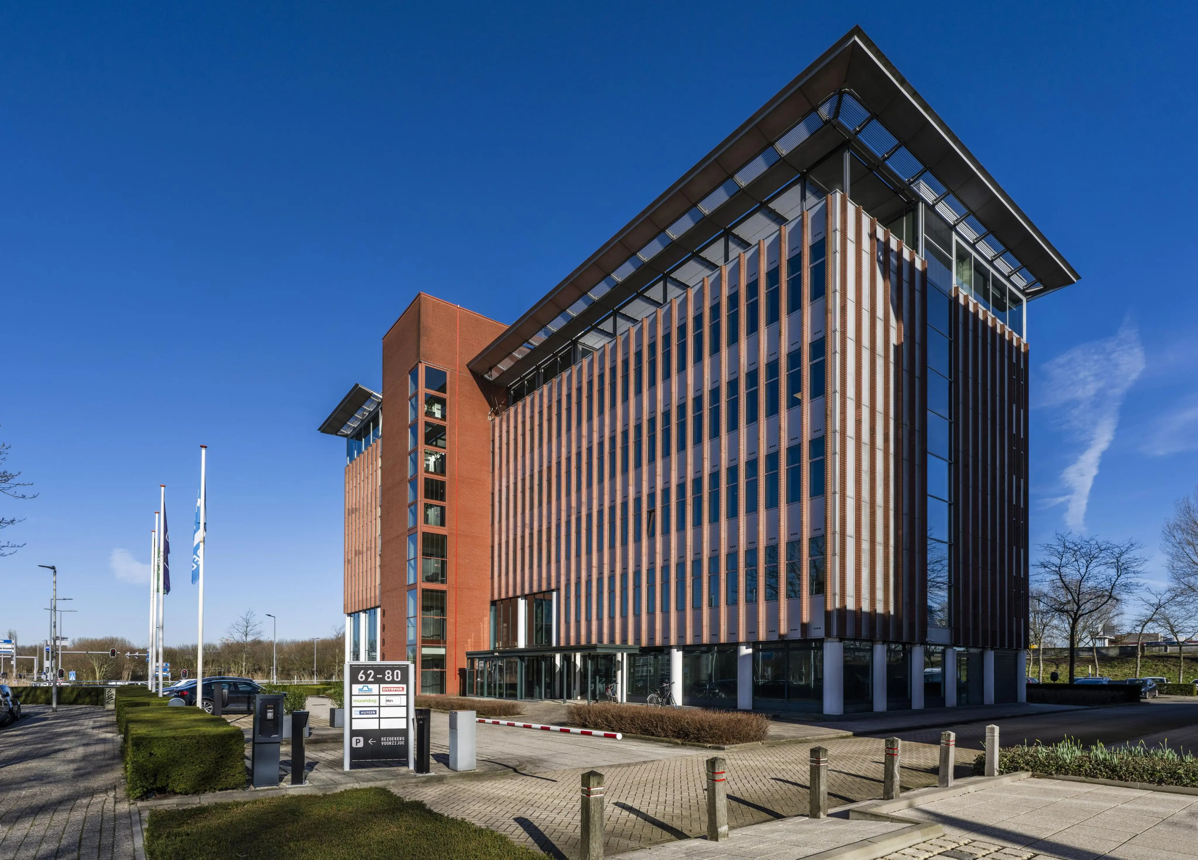 Voor de verhuur zijn momenteel nog 10 parkeerplaatsen voor de verhuur beschikbaar op het eigen, middels slagboom afgesloten parkeerterrein. Voor het gebouw zijn algemene bezoekersplaatsen aanwezig en tevens zijn er diverse laadpalen aangelegd voor algemeen gebruik.